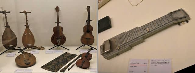 幕末から明治にかけ愛された楽器だそうで、丸い胴に二本の複弦を弾片というピックで弾いたらしいですが、おそらく複弦の片方は共鳴弦なのか?、まさかマンドリンのようにユニゾンで弾くとは思えないし、ちょっと興味が湧いた楽器でした。